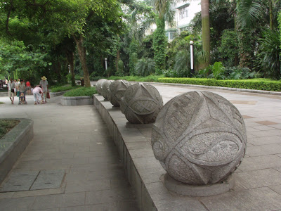 They say the White Swan is on an island, but if you asked me, which no one did, it's not an island. Anyway, it is different than the cities we've been in- where high rises loom over everything. On the "island", I think the White Swan may be the only high rise. Otherwise, the buildings are very European looking. They are smaller, maybe only 6 stories, at the most. The sidewalks are cobblestone or brick. It feels very quaint here. The restaurants have more than ox shin and fish lips. It's just picturesque of something you would see in a smaller European town. And, you can walk around the island in about 25 minutes because the sea of people mostly reside off the "island". When I think about it that way, it should be called Paradise Island!